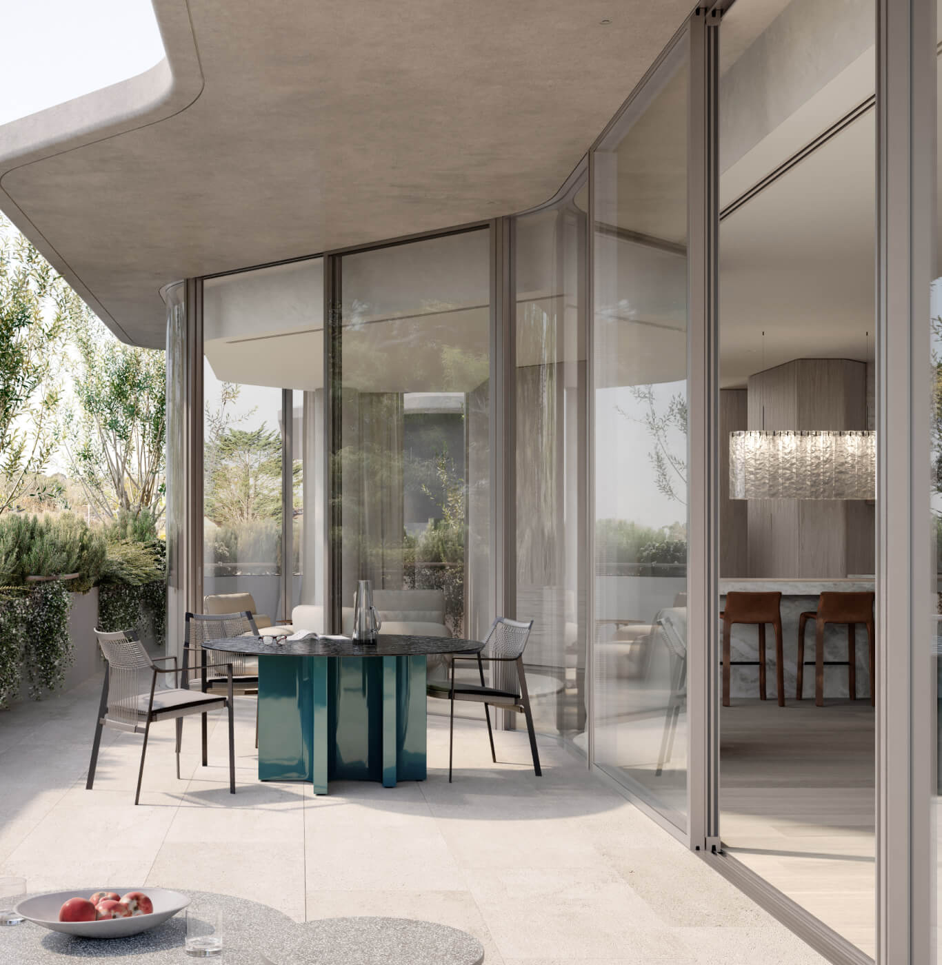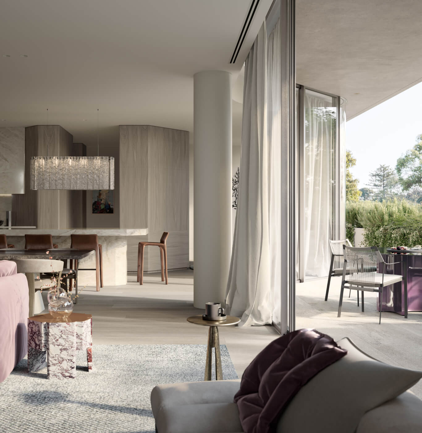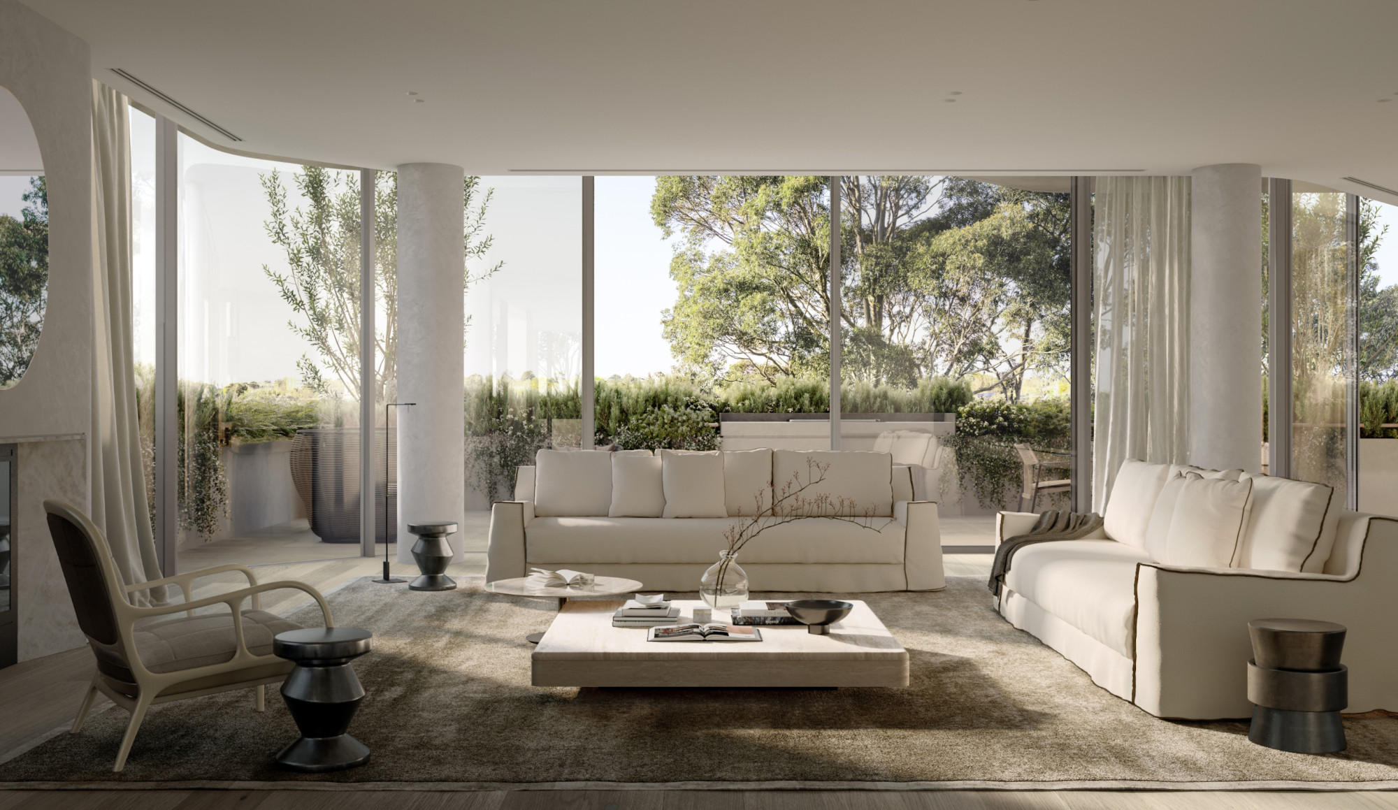 Bathed in natural light and surrounded by generous terraces, these glass pavilions boast stunning views of the park, river, and South Yarra Tennis Club.